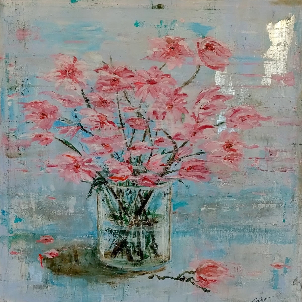 Květiny nekreslím. Nepokládám barvy na plátno, abych znázornila květ, ale abych zachytila esenci, která skrze něj přichází. Vrstvím strukturu, rytmus a ticho.