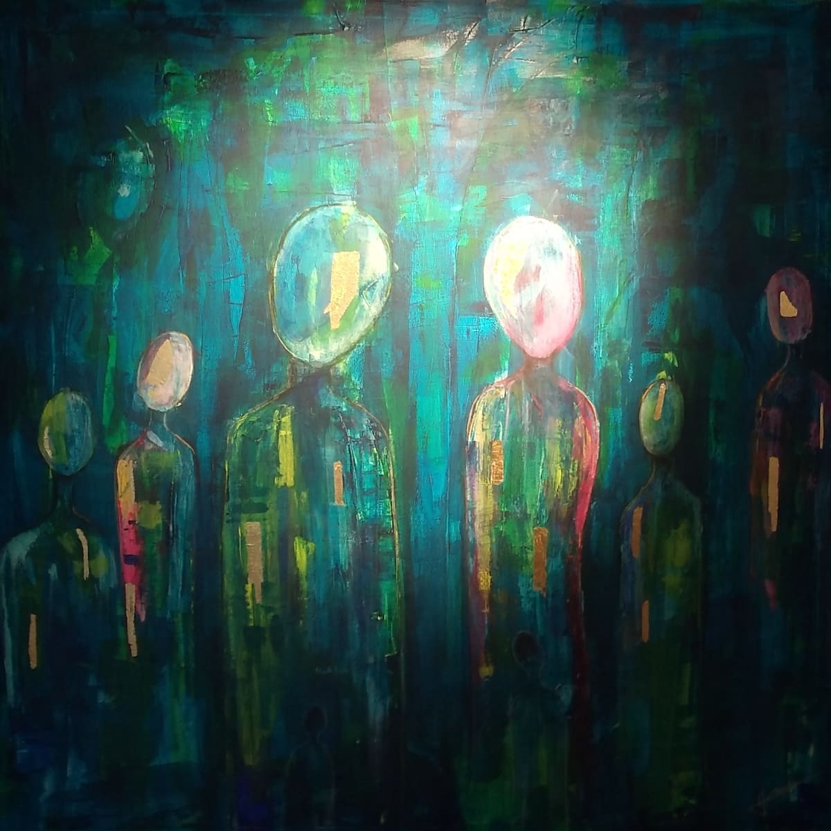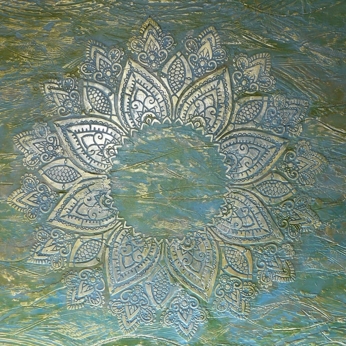 Akryl na plátně, plátkové stříbro