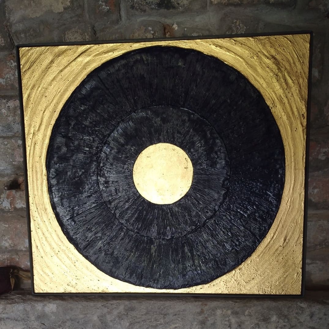 Akryl na desce, hmota, šungit